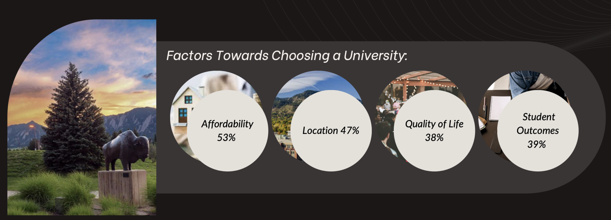 This project demonstrated how marketing strategy, consumer insights, and persuasive communication can be integrated to influence major life decisions such as university selection. By combining research-driven insights with emotionally resonant storytelling, the campaign positioned CU Boulder as more than a university—it presented it as an experience defined by exploration, opportunity, and personal growth.